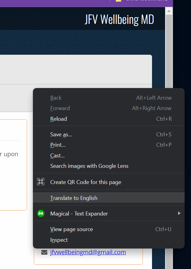 2. Vaya a nuestra página web www.jfvwellbeingmd.com y seleccione “español para ir a nuestra página web en español”.